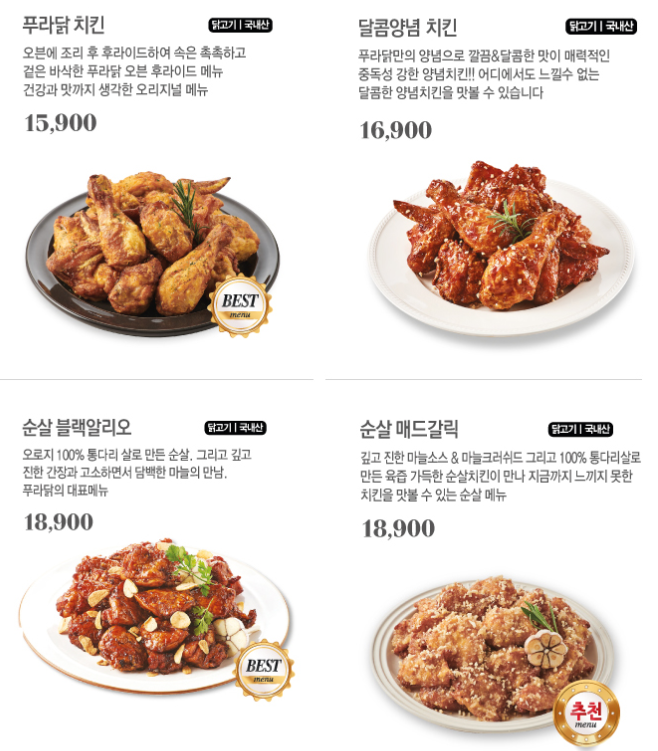 푸라닭치킨 메뉴 알아보기