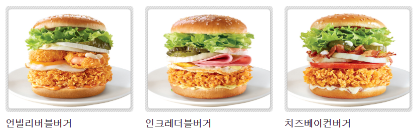 보기만 해도 먹음직한 치킨과 상큼한 양상추가 만들어내는 버거입니다.