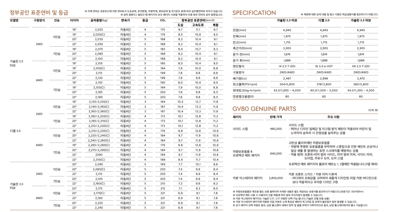 자 그럼 GV80 가격표에는 어떤내용이 담겨져있는지 살펴볼까요?